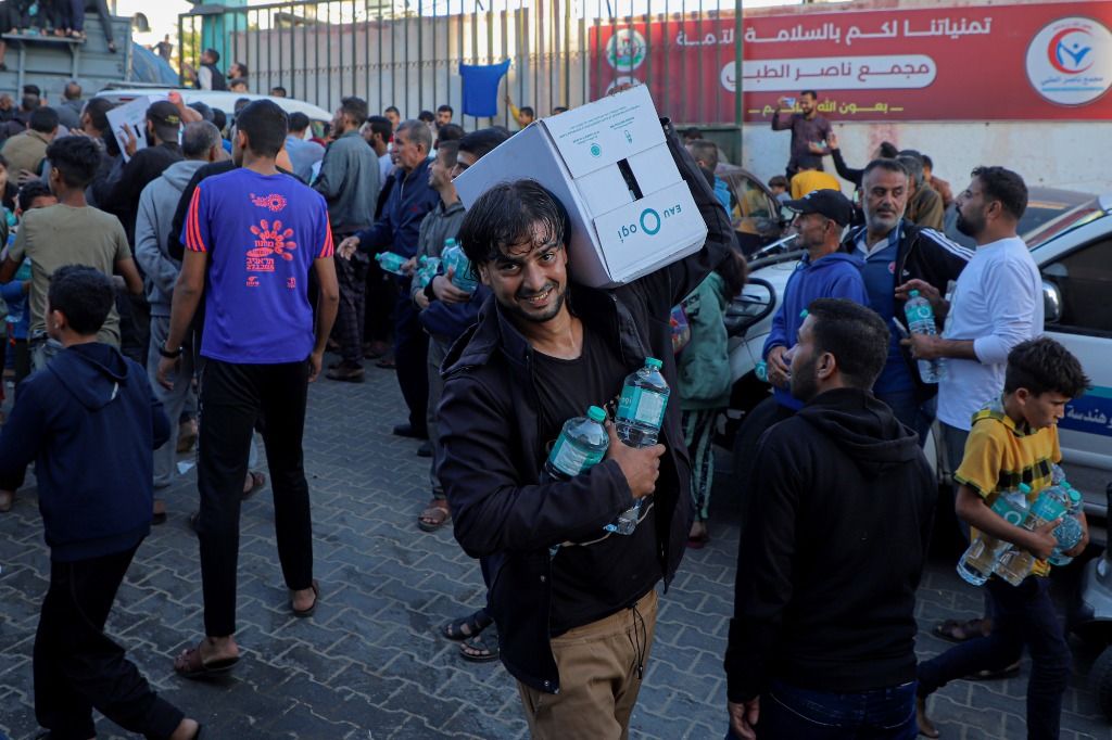 11月21日,在加沙地带南部城市汗尤尼斯,公共领取饮用水。新华社发(里泽克·阿卜杜勒贾瓦德摄)